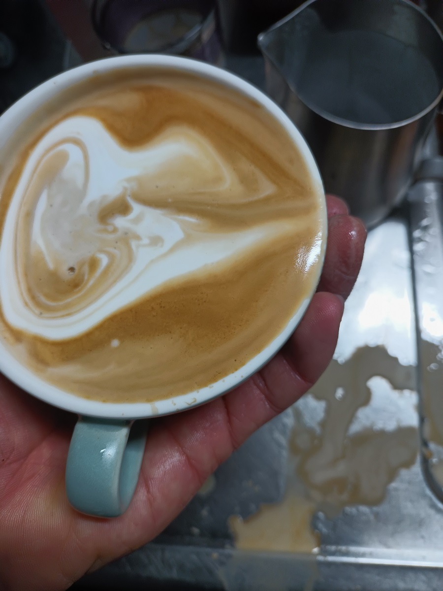 数年前に購入したエスプレッソマシンを引っ張り出し、ラテアートを練習中。